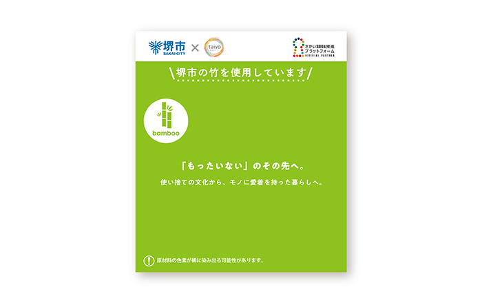 本市にある埋立処分場では、維持管理のため、生い茂っている竹の一部を伐採しています。この伐採した竹を市民の方に還元できる方法はないかと考えていた際に、堺市SDGsプラットフォームを通じて株式会社タイヨー様を紹介いただいたことがきっかけです。ごみの減量に注力する本市としては、不要となった竹を活用して新しい価値を生み出す点に加え、プラスチックの代わりに竹粉を使用することで、プラスチックの使用量及びプラスチックごみの削減に寄与する点にも着目しました。
