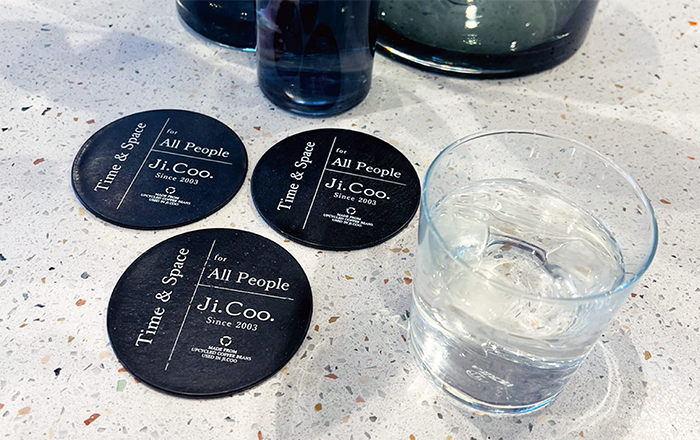 名古屋を代表するカフェレストラン、Ji.Coo.さんでオリジナルのコーヒーコースターを製作していただきました。
