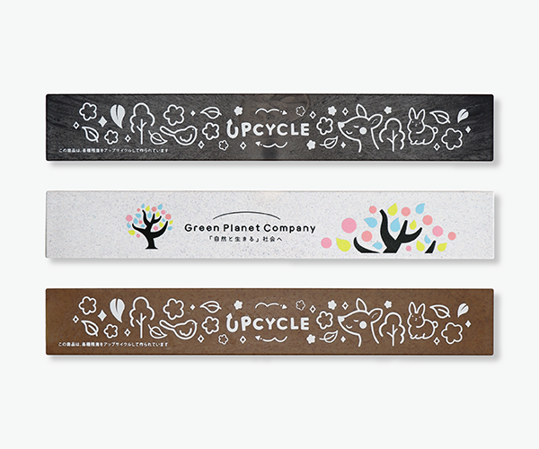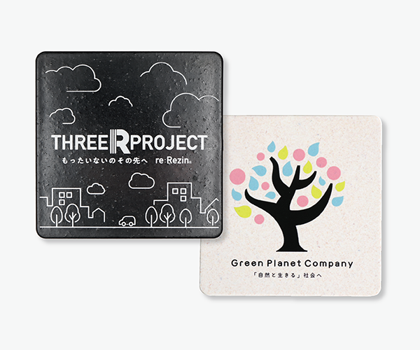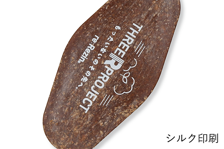 お客様で廃棄予定となっている残渣を、弊社で回収・樹脂化し、環境配慮型の商品やノベルティを製作することが可能です。もちろん名入れも可能です。